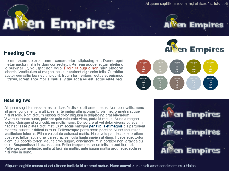 The game may have been around for a whille as lcog but now we have a new name – AlienEmpires, we really needed a new logo. So here are a few initial ideas… And a first try with a colour palette. Palette is from dynamicgraphics.com and hopefully matches the kind of colours used in 60s sci-fi.