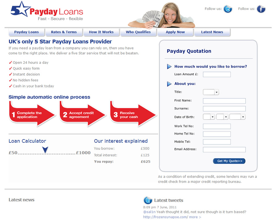 This was a simple site based on a HTML home page, with a javascript calculator and a wordpress blog simply attached with the same design. The application form is a third-party component and so I simply built the design in HTML, CSS and Javascript and implemented in WordPress.