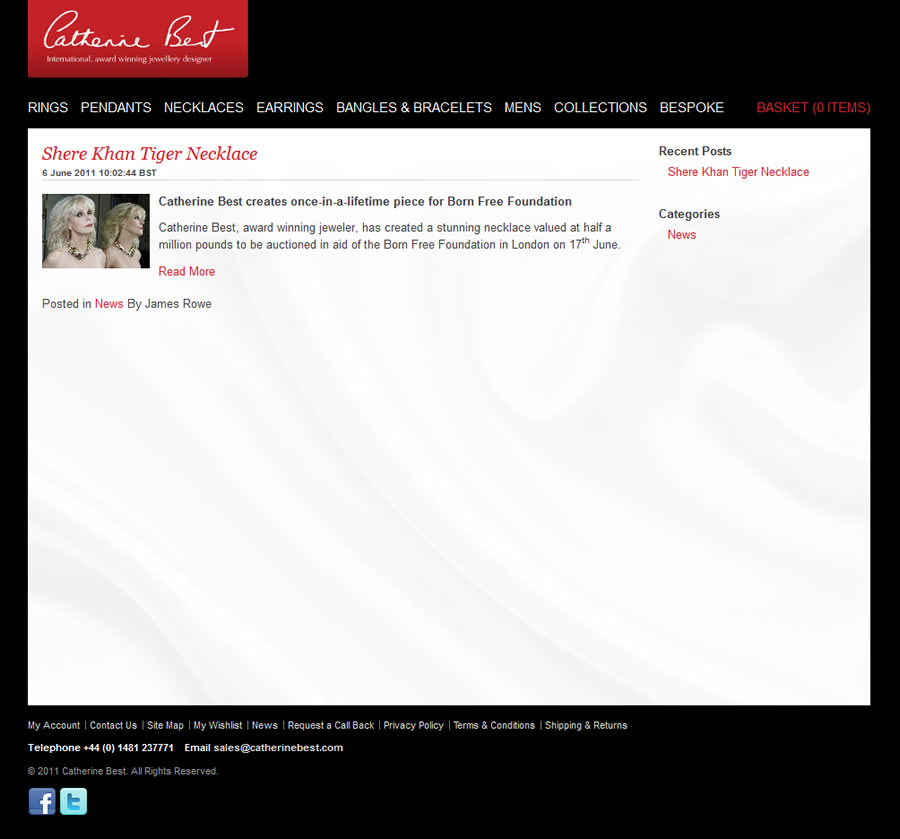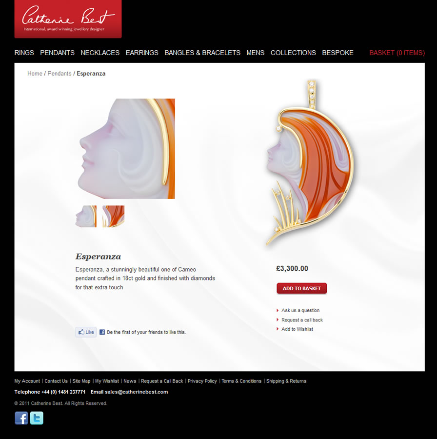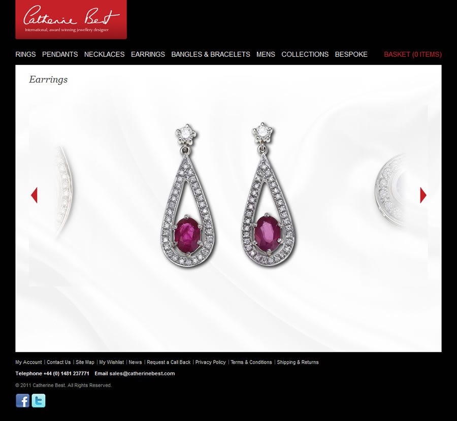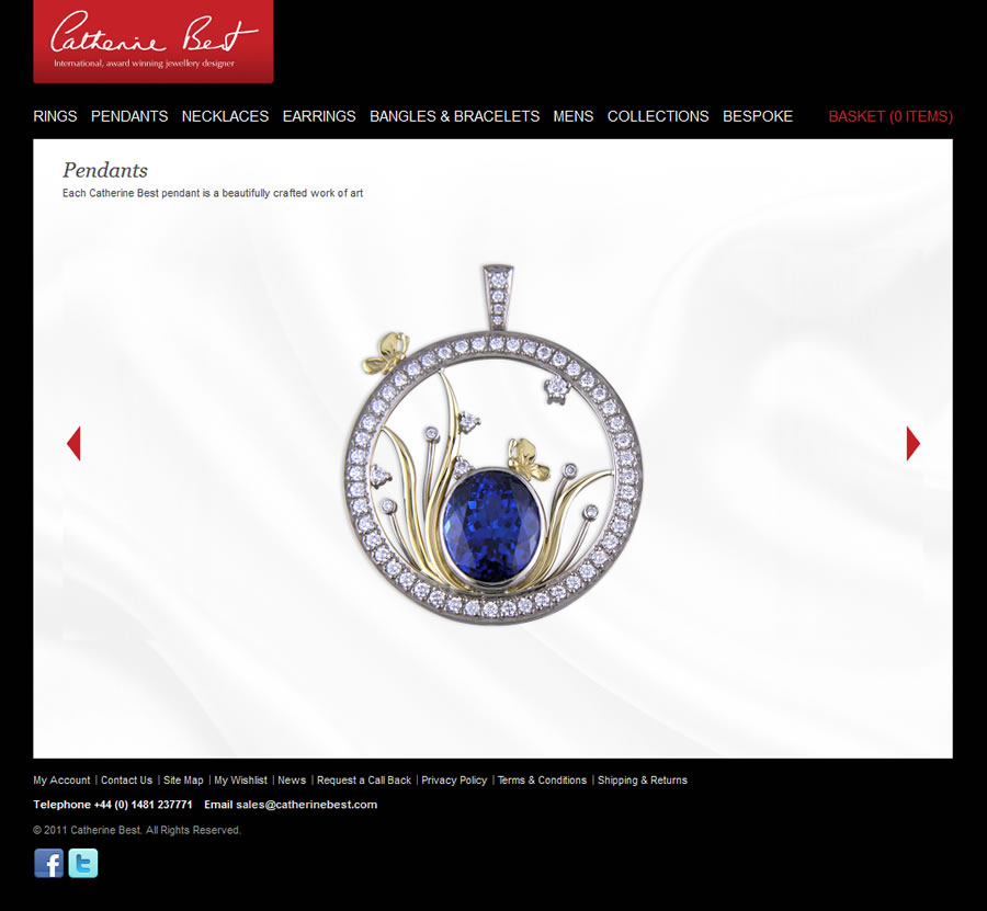 This Magento site had a really fast turn-around and I think everyone has been really pleased by the results. We are aiming for a high-end market and trying to make the most of the Jewellery. From a technical point of view the site uses Magento under the hood, but the product lists have been heavily customised to show large product images and use some flashy javascript to scroll through the product photos. The product pages themselves have also been customised significantly to provide a much simpler and cleaner view than a standard Magento page would provide but also to replace the standard photo zoom function with a nicer looking thumbnail/image arrangement. Once you start getting deeper into the eCommerce bits of the site it reverts to a slightly more Magento standard look and feel – because it works so well. Take a look at the gallery below for a closer look.
