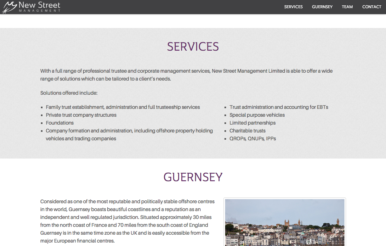 This is a nice clean and simple one-page design for a Guernsey Trust company, using the Foundation CSS framework and graphical elements from TwoDegreesNorth. The project well well and was turned around quickly for the client.